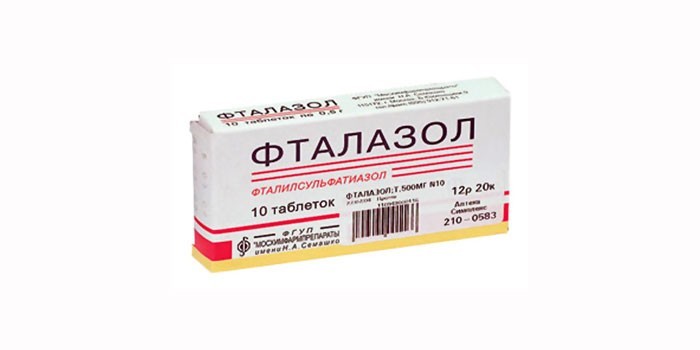 - Фталазол – применяется для терапии шигеллеза, дизентерии, колита, гастроэнтерита. Противопоказан при гиперчувствительности к компонентам состава. Инструкция по применению: внутрь по 1 г 6 раз в сутки в первые дни, потом по 1 г 3–4 раза в день. Курс длится 5–6 суток, через неделю его повторяют. Побочные реакции: сыпь, лихорадка. 10 таблеток стоят 15 р.